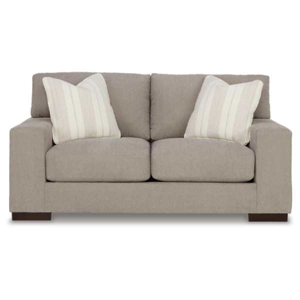 Built for superior comfort, the Maggie Sofa and Loveseat feature high-resiliency foam cushions that provide excellent support and maintain their shape over time. The deep seating design allows for a cozy lounging experience, while padded armrests and plush pillow backs add an extra layer of relaxation.