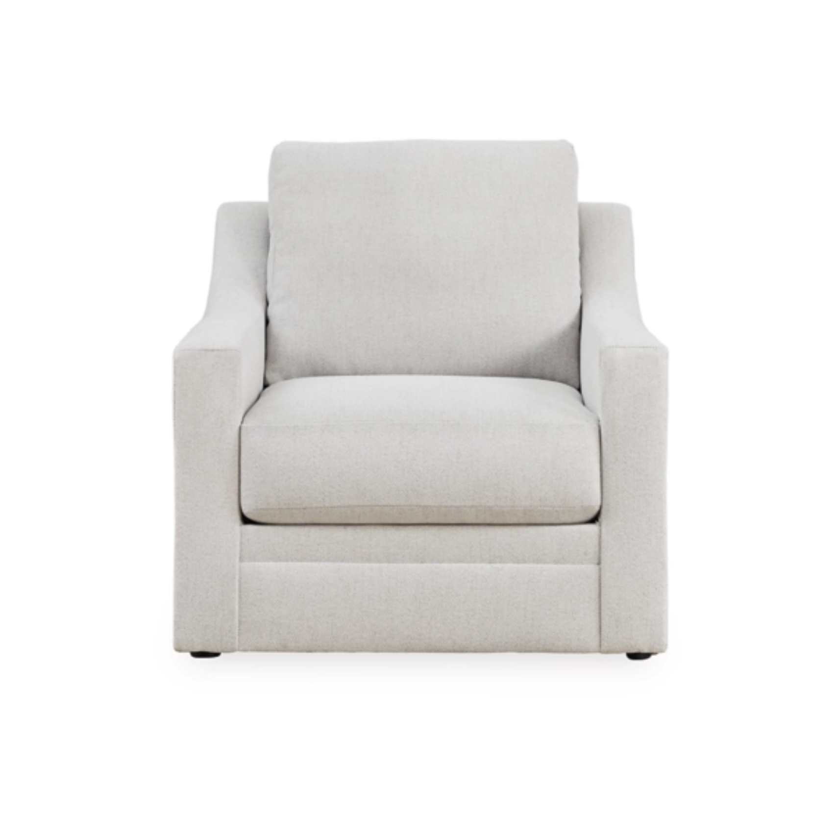 Upholstered in a neutral chalk-colored fabric, the set exudes a casual yet refined aesthetic, suitable for various interior décor styles. The soft, textured upholstery adds a luxurious feel to the modern design. Durable construction ensures longevity, while the comfortable cushioning invites relaxation. The versatile design allows the set to complement different color schemes and room layouts.