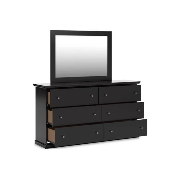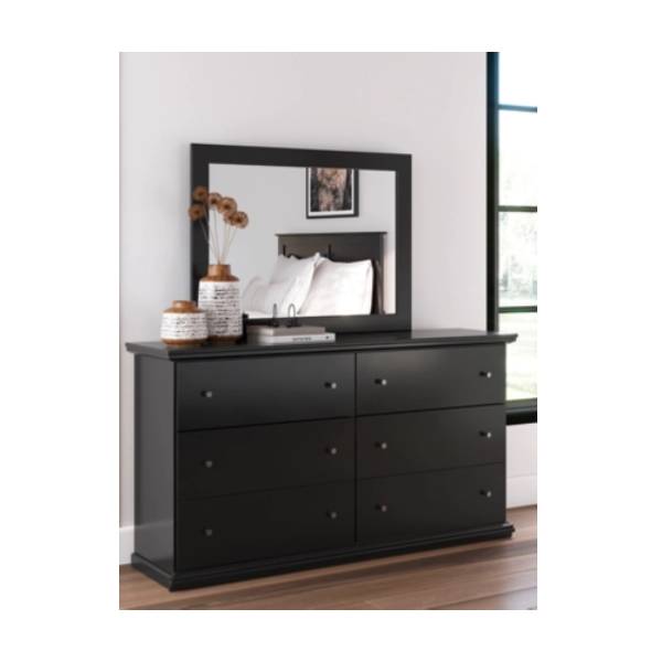 The Maribel Dresser and Mirror features a bold contemporary design with a sleek black finish and clean lines.Its spacious drawers offer practical storage while enhancing the refined aesthetic of your bedroom.Crafted for durability, it combines modern appeal with everyday functionality.