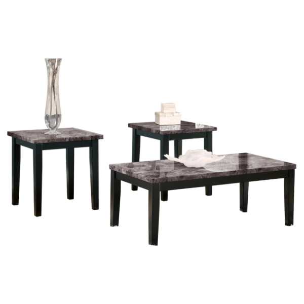 The Maysville Occasional Table Set offers sleek style and modern sophistication. Featuring a faux marble top and bold black base, this 3-piece set elevates any living room space. It includes one coffee table and two matching end tables.