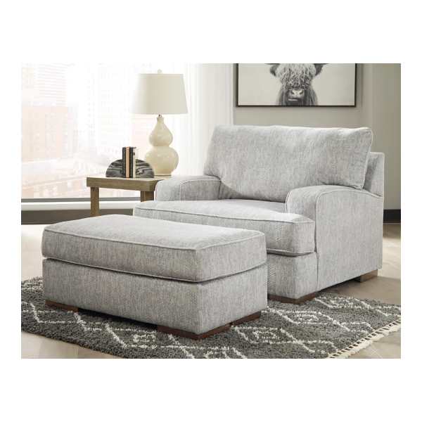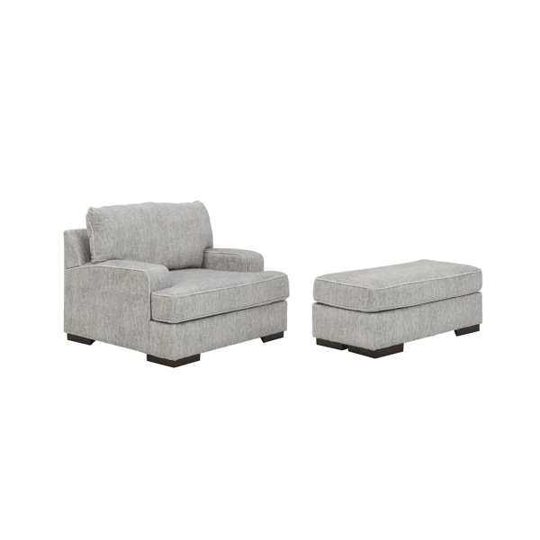 The Mercado Chair and Ottoman set blends modern sophistication with timeless comfort. Designed for deep, ultra-plush seating, this 2-piece set is perfect for those who appreciate both style and relaxation. The soft gray upholstery, featuring a subtle chevron texture, adds an understated touch of elegance to any living space.