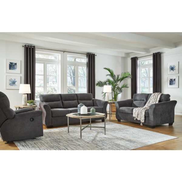 The Miravel Sofa, Loveseat, and Recliner set combines elegance with plush comfort. Featuring smooth reclining functionality and durable construction, it offers excellent support and relaxation. A perfect blend of style and coziness for any modern living space.