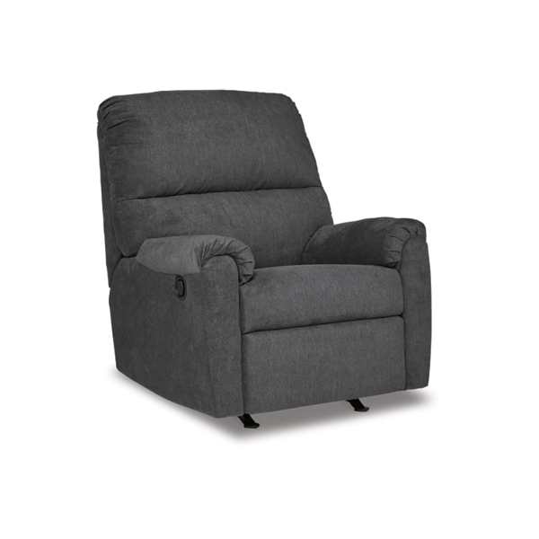 The Miravel Sofa, Loveseat, and Recliner set is a subtle showstopper that blends contemporary design with playful simplicity. Its curving, tapered arms add movement to the structured silhouettes, making it a versatile addition to casual, contemporary, or eclectic spaces. The sofa and loveseat both feature a corner-blocked frame, loose seat cushions, and attached back cushions filled with high-quality foam wrapped in poly fiber. Upholstered in soft polyester fabric, they are supported by a platform foundation system that resists sagging three times better than a spring system, maintaining a tight, wrinkle-free look over time. Exposed feet with a faux wood finish add a touch of elegance. The rocker recliner offers a one-pull reclining motion, a corner-blocked frame with a metal-reinforced seat, and attached cushions filled with high-quality foam wrapped in poly fiber. It also features a gentle rocking motion for added relaxation, all wrapped in the same stylish polyester upholstery.