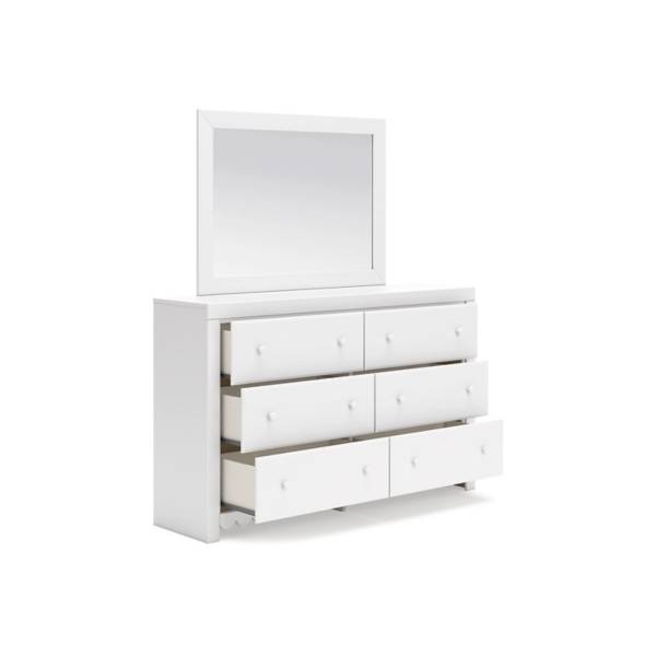 Crafted from durable engineered wood and decorative laminate, the dresser is built to offer long-lasting appeal without compromising on value. Six smooth-gliding drawers provide generous storage space for clothing and accessories, with interiors lined in faux linen laminate for a refined finish. Simple white knobs complement the clean, graceful design, while the mirror can be mounted to the back of the dresser or on the wall for flexible placement. Designed with safety in mind, this piece meets ASTM standards for stability, ensuring peace of mind in your home.