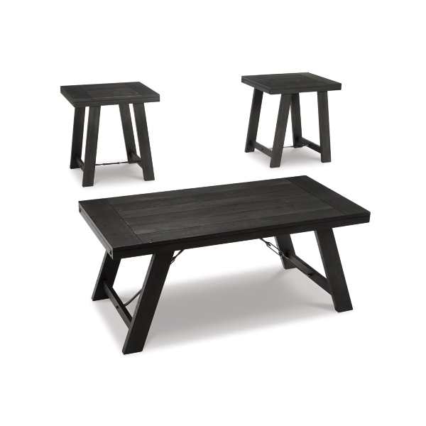 The Noorbrook Occasional Table Set blends rustic appeal with modern durability. With its weathered black finish and sturdy construction, this 3-piece set brings rugged elegance to your living room. Includes a rectangular coffee table and two matching end tables for a cohesive look.
