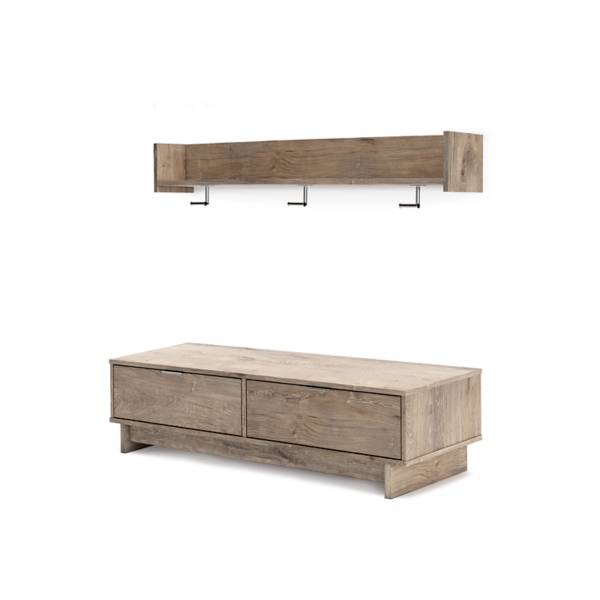 The dry, light finish with replicated oak grain and authentic touch is accented with brushed nickel-tone pulls as well as hooks on the coat rack for hats and handbags. Two spacious drawers provide endless options for storage while the coat rack features an open shelf for easy access or display. Wall mounting bracket included.