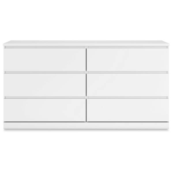 Transform your bedroom into a modern sanctuary with the Onita Six Drawer Dresser from Teletime. Its minimalist design exudes contemporary elegance, featuring ultra-clean lines and a sleek solid white finish that brings a fresh, airy feel to any space. The dresser’s hardware-free aesthetic enhances its seamless look, making it a stylish focal point in your room.