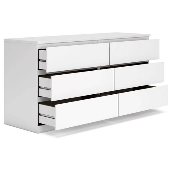 Crafted from durable engineered wood with a decorative laminate, it offers the perfect blend of affordability and long-lasting quality. Six spacious drawers glide effortlessly on ball-bearing slides, with vinyl-wrapped sides and backs for added durability, making organization simple and convenient. Prioritizing safety, the Onita dresser meets the latest ASTM F 2057 stability standards, allowing drawers to extend fully while maintaining secure functionality. Easy to assemble, this dresser delivers both practicality and refined modern style to your home.