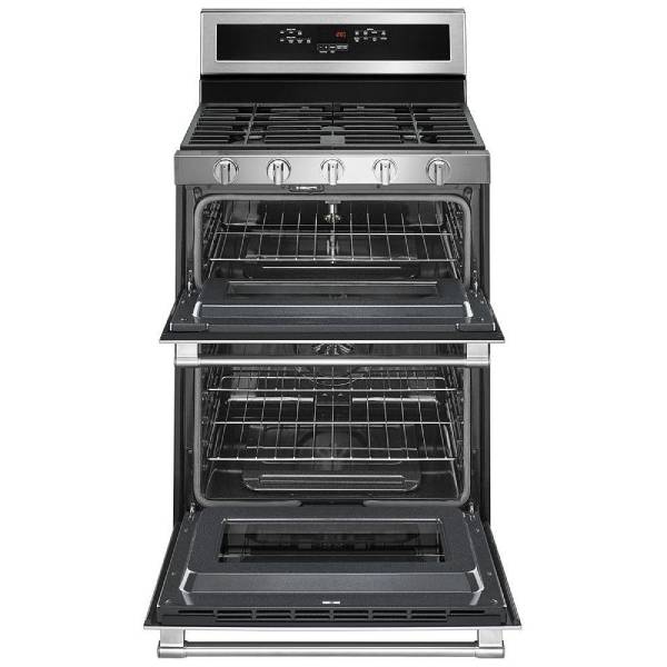 Maytag MGT8800FZ Gas Range, 30 inch Exterior Width, Self Clean, Convection, 5 Burners, 6.0 cu. ft. Capacity, 2 Ovens, Stainless Steel colour True European Convection