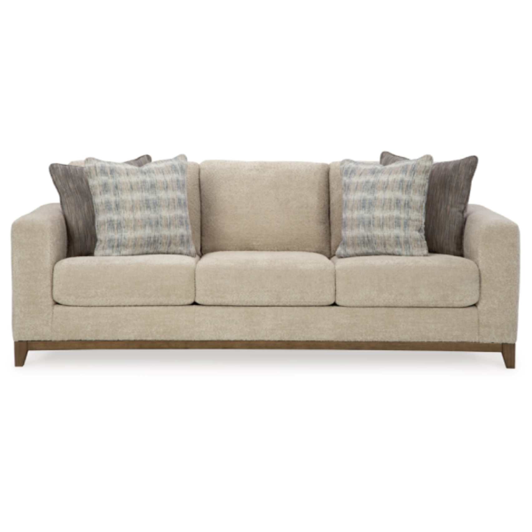 Loveseat: At 67 inches wide, 40 inches deep, and 38 inches high, the loveseat provides cozy seating for two. It shares the same design elements as the sofa, including plush cushioning and stylish accents, maintaining a cohesive look in your living space.