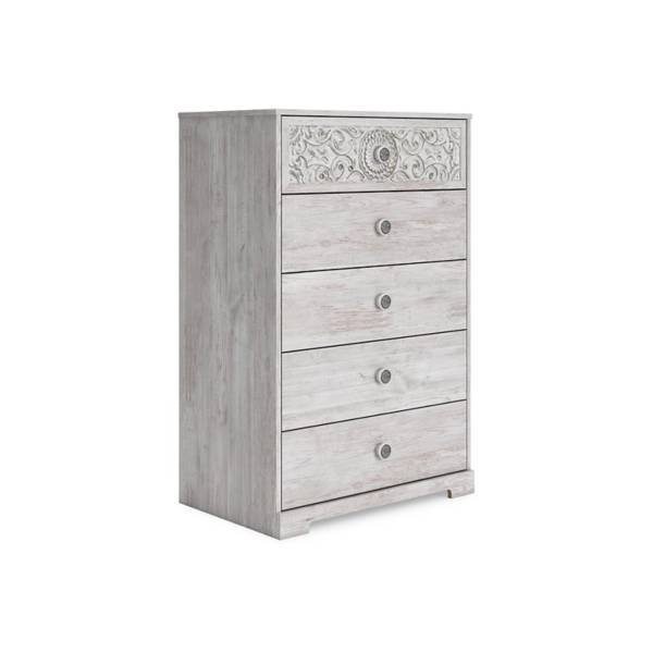 The Paxberry Five Drawer Chest offers spacious storage solutions while ensuring long-lasting durability. Its thoughtful organization features and stylish design blend seamlessly into any room. With a focus on functionality, it adds both charm and convenience to your living space.