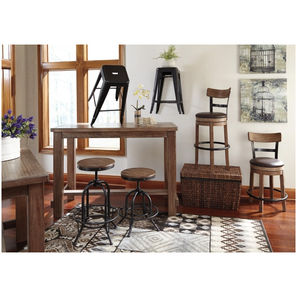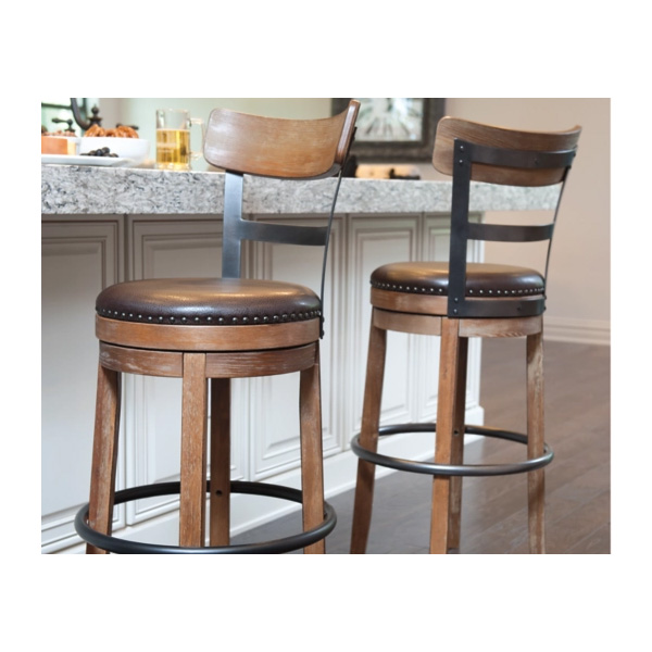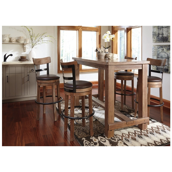 With its tall, well-balanced structure and built-in footrest, this barstool ensures a stable and relaxing experience. Its versatile design complements both contemporary and rustic interiors, adding a sophisticated touch to any high-top table or bar setup. Whether for casual meals or entertaining guests, the Pinnadel Tall UPH Swivel Barstool (D542-130) delivers both functionality and style to your space.