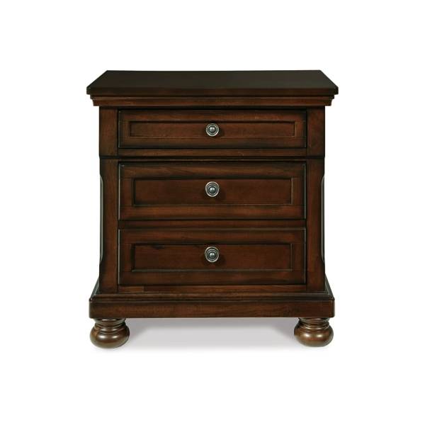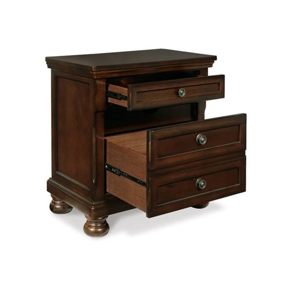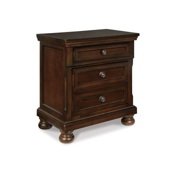 The Porter Two Drawer Night Stand showcases timeless craftsmanship with a rich, warm finish.Its sturdy construction and spacious drawers deliver both durability and function.Perfect for adding elegant charm to any traditional bedroom décor.