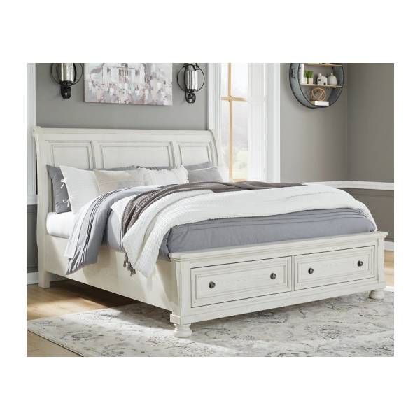 The Robbinsdale California King Sleigh Bed with Storage combines elegant design with timeless appeal, making it a standout piece in any bedroom. Its spacious storage footboard provides both style and practicality, while the durable construction ensures lasting quality. Experience a functional yet refined addition to your bedroom decor.