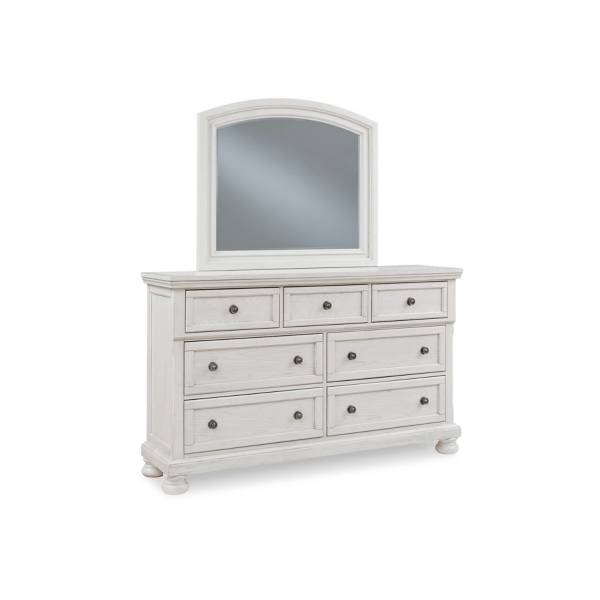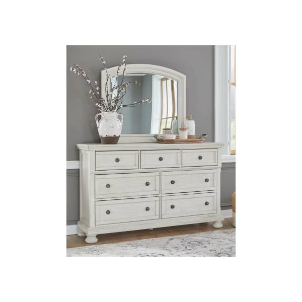 Paired with a matching mirror that seamlessly attaches to the dresser, this set delivers both classic style and everyday practicality. The Robbinsdale Dresser and Mirror is a sophisticated centerpiece designed to bring lasting beauty and functionality to your bedroom—only at Teletime.