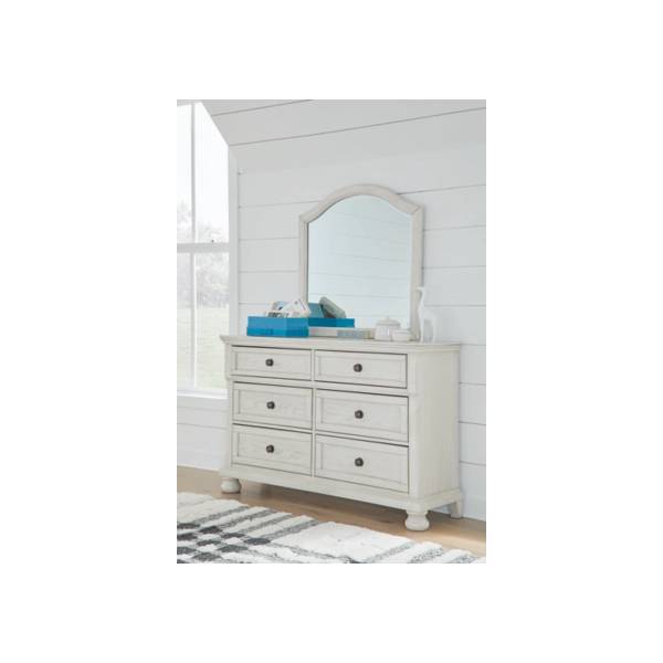 The Robbinsdale Dresser and Mirror set exudes vintage elegance with a classic design and refined details. Featuring spacious storage and a durable build, it offers both beauty and functionality. The coordinating mirror adds a touch of sophistication to complete the look.