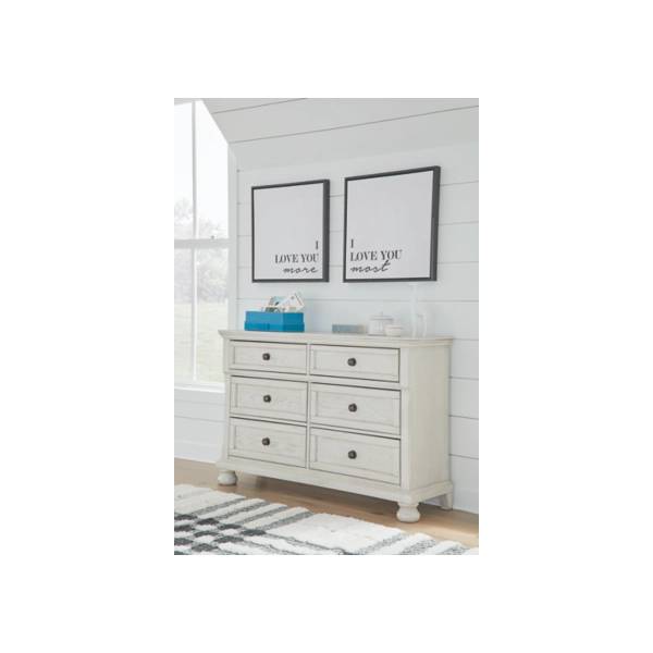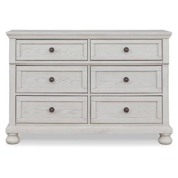 With its timeless appeal and attention to detail, the Robbinsdale Dresser seamlessly fits into a variety of bedroom settings, making it the perfect centerpiece for any space. The careful craftsmanship and thoughtful design ensure that this dresser not only serves as a storage solution but also as an enduring piece that enhances the overall ambiance of your home. Available exclusively at Teletime, this dresser is ready for easy assembly and will add an enduring sense of sophistication to your room in no time.