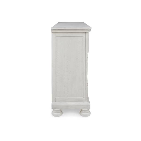 The Robbinsdale Dresser is the epitome of elegance and timeless design, making it the perfect addition to your bedroom. With its antiqued white finish and rich wood grain texture, this dresser exudes sophistication and class, effortlessly elevating your space. The dark bronze-tone hardware enhances the dresser's ornate character, offering a touch of vintage charm that complements its modern functionality.