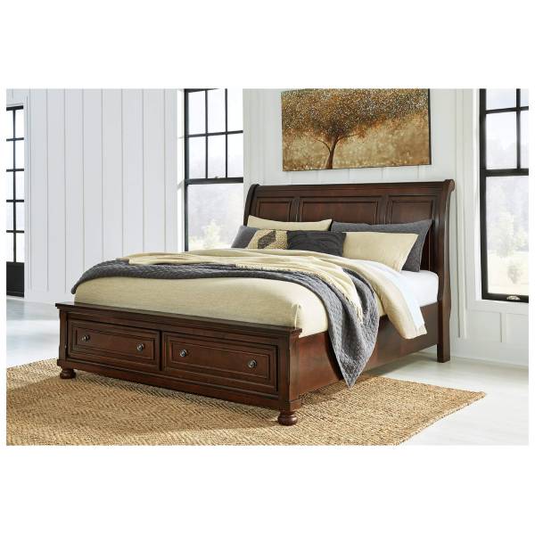 Meticulously crafted from veneers, wood, and engineered wood, the Robbinsdale Queen Sleigh Bed guarantees durability and a quality build. The bed features metal hardware that complements its antique aesthetic, enhancing the overall design. Its smooth-gliding drawers offer practical storage, making it not only a stylish centerpiece but also a functional addition to your bedroom setup.