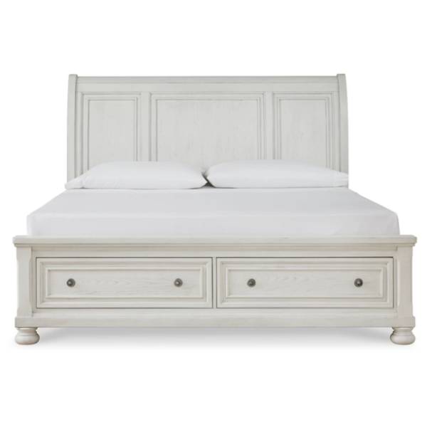The Robbinsdale Queen Sleigh Bed with Storage combines elegant design with functional convenience, offering both style and practicality. Its durable construction ensures lasting quality, while the spacious storage adds versatility to your bedroom. Experience comfort and sophistication in one beautifully crafted piece.