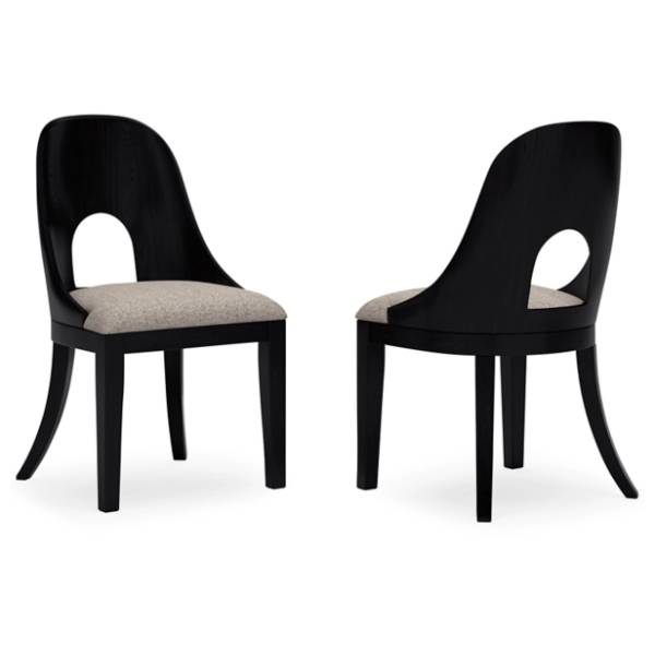 Elevate your workspace with the Rowanbeck home office desk chair, inspired by art deco design. Its stunning curved silhouette and rich black finish on textured wood grain create a bold, sophisticated look.