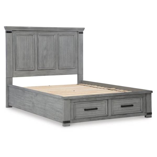 The Russelyn Queen Storage Bed combines urban farmhouse charm with modern functionality, making it a stunning centerpiece for your bedroom. Its light weathered gray finish highlights the natural beauty of the acacia wood, veneer, and engineered wood construction, while the thick-profiled top molding on the tall, mansion-style headboard offers a fresh interpretation of classic design.