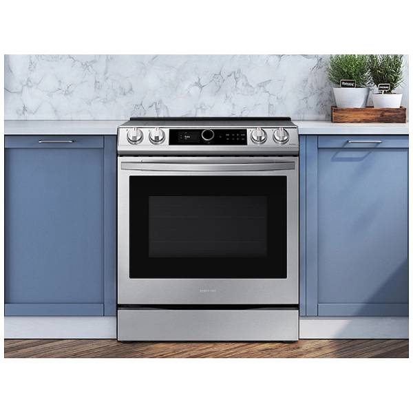 Samsung Bespoke NE63T8711SS - NE63T8711SS/AC Electric Range, 30 inch Exterior Width, Self Clean, Convection, 5 Burners, 6.3 cu. ft. Capacity, Storage Drawer, Air Fry, 1 Ovens, Stainless Steel colour True European Convection, Smart Dial, Temperature Probe, Illuminated Knobs