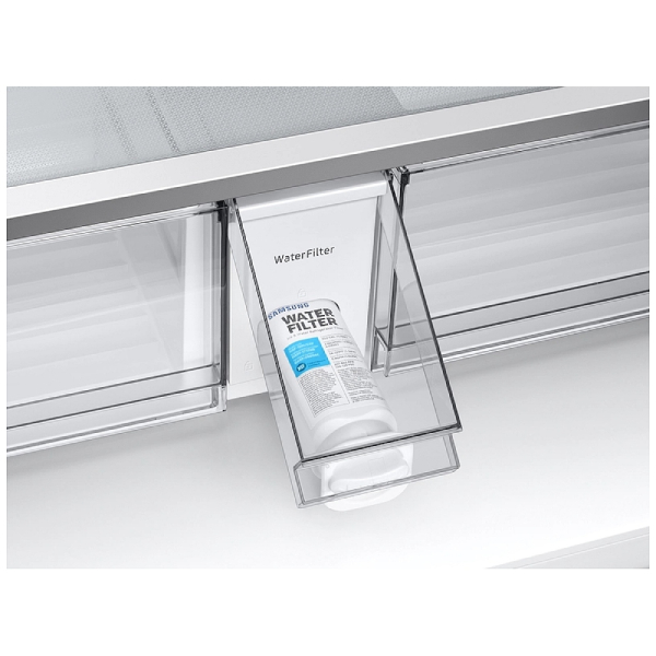 But the RF23BB8200QLAA offers more than just aesthetics. It's packed with innovative features that make daily life easier and more convenient. The Beverage Center™ provides easy access to fresh and flavored water at the touch of a button, eliminating the need for heavy water jugs or constant refilling of a regular pitcher.