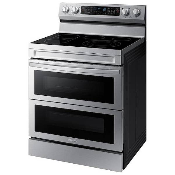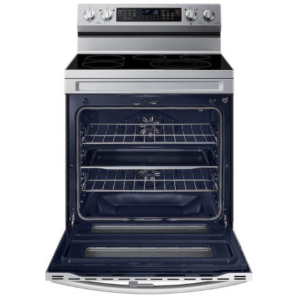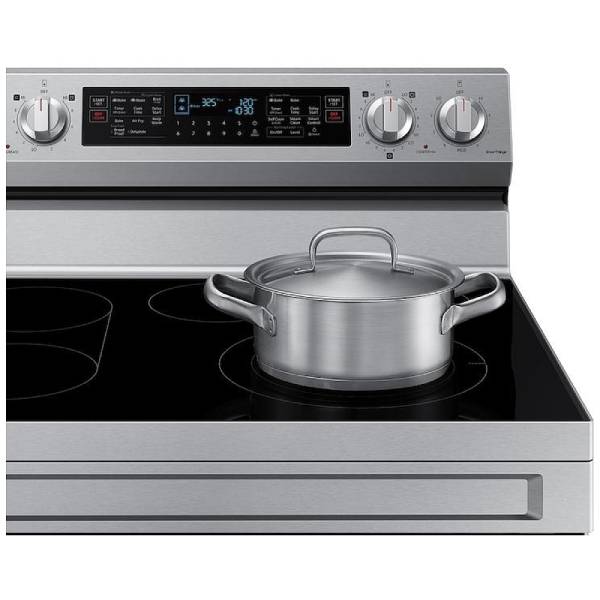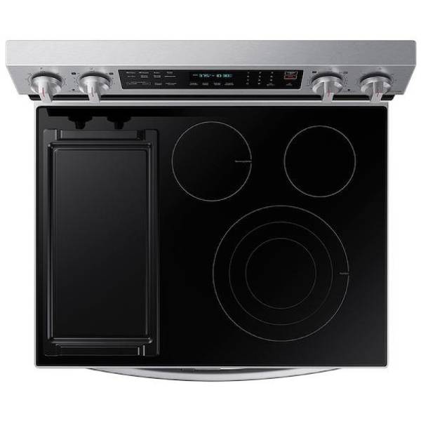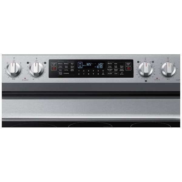 Samsung NE63A6751SS - NE63A6751SS/AC Electric Range, 30 inch Exterior Width, Self Clean, Convection, 5 Burners, 6.3 cu. ft. Capacity, Air Fry, 2 Ovens, Stainless Steel colour Dual Fan True European Convection, FlexDuo w/ Dual Door, Aluminum Griddle,Soft Close Door