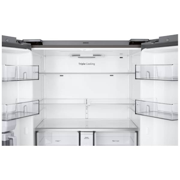 In addition to these features, the RF23A9071SR boasts a triple cooling system, maintaining optimal humidity and temperature levels to keep your food fresh and well-preserved for longer periods.