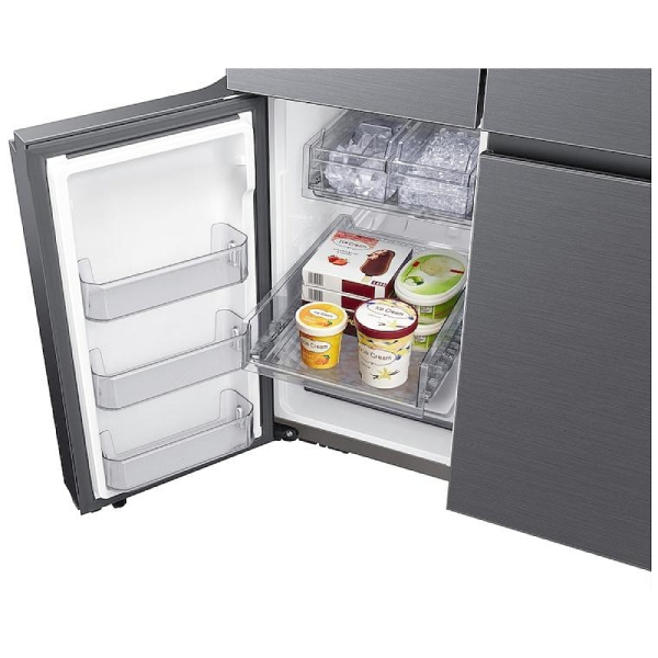 In addition to its convenient ice maker, the Samsung RF23A9671SG boasts a Triple Cooling System and Metal Cooling, ensuring optimal temperature and humidity levels throughout the refrigerator, freezer, and pantry. This preserves the freshness of your food, allowing you to enjoy delicious ingredients without worrying about spoilage.