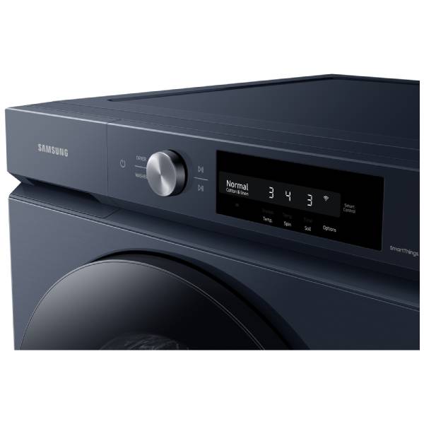 Samsung Bespoke WF46BB6700ADUS Front Load Washer, 27 inch Width, ENERGY STAR Certified, 5.2 cu. ft. Capacity, Steam Clean, 24 Wash Cycles, 5 Temperature Settings, Stackable, 1200 RPM Washer Spin Speed, Water Heater, Wifi Enabled, Navy colour Super Speed, AI Smart Dial