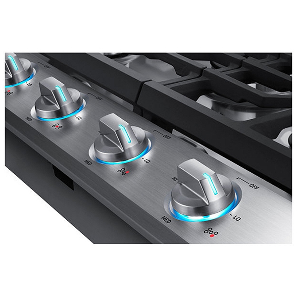 The Samsung NA30N6555TS is designed with illuminated knobs, adding a touch of elegance to your kitchen and enhancing functionality. These knobs not only contribute to the cooktop's modern appearance but also ensure you can easily see and adjust the burners, even in low light.