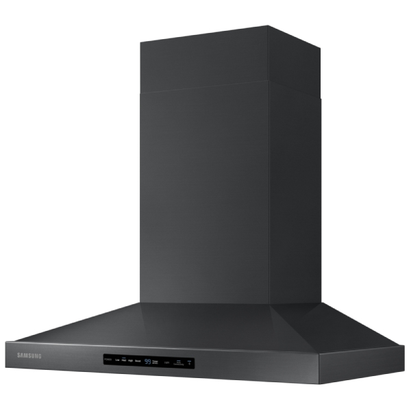 Samsung NK30K7000WG Range Hood, 30-Inch Exterior Width, Chimney, Wall Mounted, 600 CFM, LED, Dishwasher Safe Baffle Filter, Black Stainless Steel
