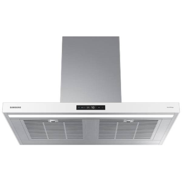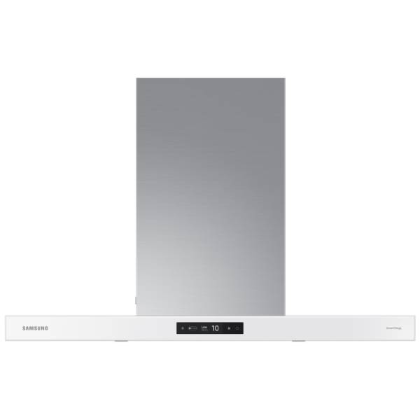 Samsung Bespoke NK36CB700W12AA Range Hood, 36 inch Exterior Width, Chimney, Wall Mounted, 630 CFM, Accepts Both, LED, Dishwasher Safe Filters, Charcoal Filters, White Glass colour