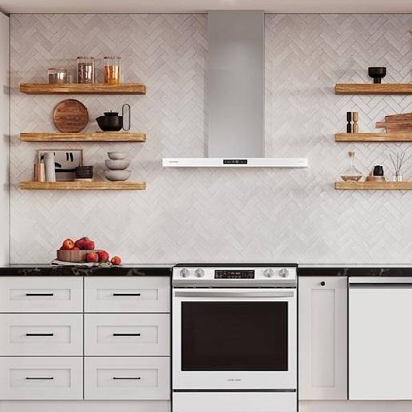 Upgrade your kitchen with the Samsung Bespoke NK36CB700W12AA 36 Inch Chimney Hood, available at Teletime. Enjoy the perfect blend of style, functionality, and advanced technology for an enhanced cooking experience.