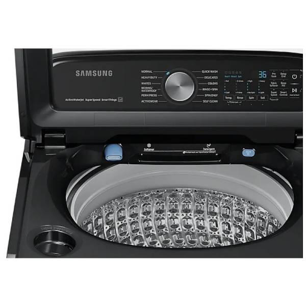 Samsung WA50A5400AV - WA50A5400AV/A4 Top Load Washer, 27 1/2 inch Width, ENERGY STAR Certified, 5.8 cu. ft. Capacity, 12 Wash Cycles, 5 Temperature Settings, 750 RPM Washer Spin Speed, Wifi Enabled, Black Stainless Steel colour Super Speed, Water Faucet