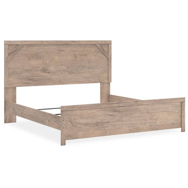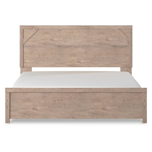 The Senniberg King Panel Bed embodies a cool, clean, and casually modern design, setting the perfect tone for a peaceful bedroom retreat. Its light natural finish creates an inviting atmosphere, while framed elements and cross-brace accents bring an added layer of dimension and authenticity to the bed’s effortlessly stylish profile.
