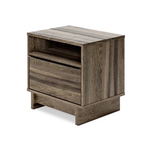 Create a modern sanctuary with the Shallifer One Drawer Nightstand, a perfect blend of minimalist design and everyday functionality. Featuring a weathered brown finish over a replicated oak grain, this nightstand brings a warm, organic aesthetic to your bedroom while maintaining a sleek and contemporary feel. Its low-profile base enhances its understated elegance, making it a versatile choice for various décor styles.