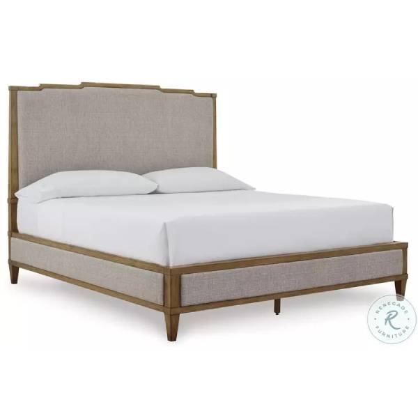 The Sharlance California King Upholstered Panel Bed effortlessly blends timeless design with modern elegance, creating a serene focal point for your bedroom retreat. Its neutral, softly upholstered headboard complements any decor style, making it a versatile choice for both traditional and contemporary spaces. The chic wood frame and staggered detailing on the headboard add visual depth, elevating the bed's sophisticated aesthetic.