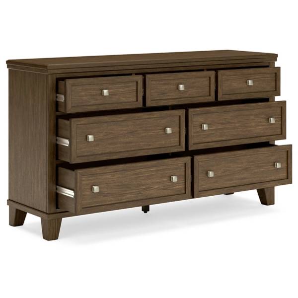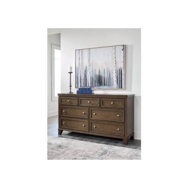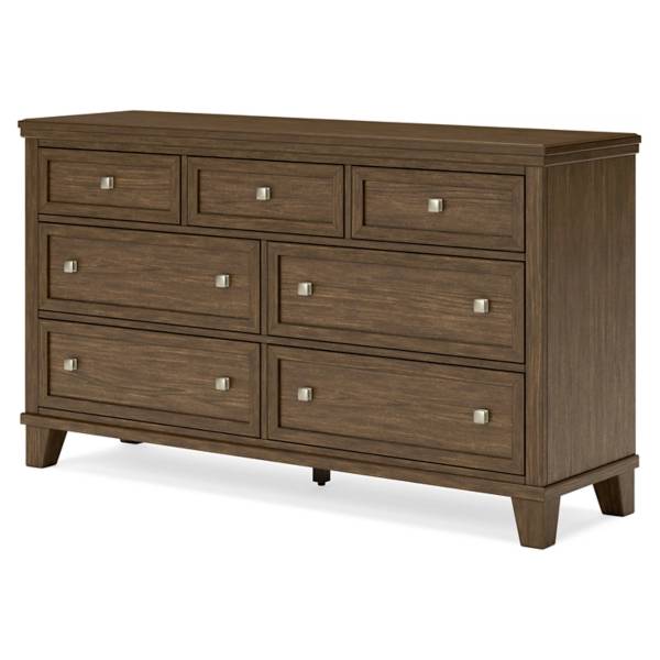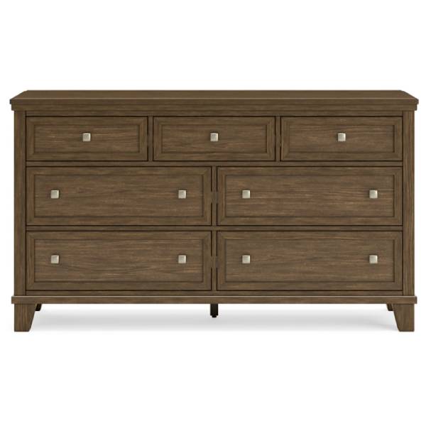 Seven spacious drawers provide ample storage for your wardrobe, with fully finished interiors and dovetail construction ensuring lasting quality. Smooth ball-bearing side glides allow for effortless opening, while the inset picture-framed drawer fronts add an elegant touch. Brass-tone pulls bring a warm contrast to the wood finish, enhancing its refined appearance. With its profiled top and sturdy bracket feet, the Shawbeck dresser delivers both charm and practicality. Whether you’re refreshing your space or seeking reliable storage, this dresser is designed to offer comfort and style for years to come.