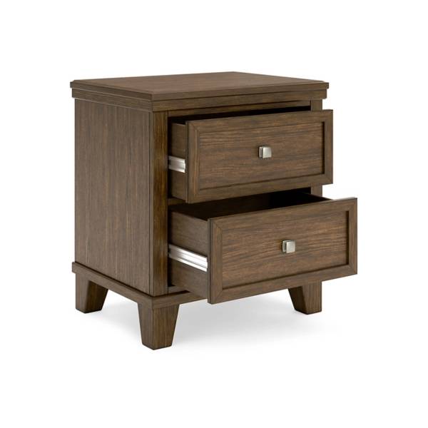 Enhance your bedroom with timeless charm and everyday functionality with the Shawbeck Two Drawer Night Stand, available exclusively at Teletime. Designed to seamlessly complement a wide range of décor styles, this nightstand strikes the perfect balance between classic elegance and practical design. Its warm medium brown finish offers a rich, inviting look that effortlessly coordinates with both traditional and transitional interiors, making it a versatile addition to any space.