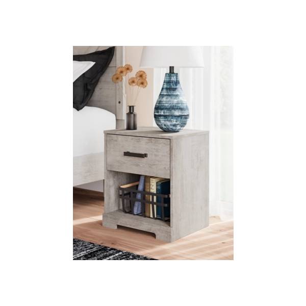 The Shawburn One Drawer Nightstand features a sleek modern design that enhances any bedroom space. Its compact build and durable construction make it perfect for smaller rooms. With a smooth-gliding drawer and open shelf, it offers both style and practical storage.