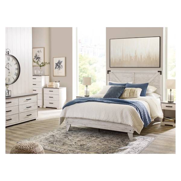 Teletime's innovative bed-in-a-box shipping system ensures a seamless experience, delivering your new bed directly to your door with ease. Assembly is required, but the straightforward design makes the setup process quick and hassle-free. Whether you are updating your bedroom’s aesthetic or looking to create a cozy retreat, the Shawburn Queen Crossbuck Panel Platform Bed offers both style and practicality, combining rustic warmth with contemporary flair. Mattress sold separately.