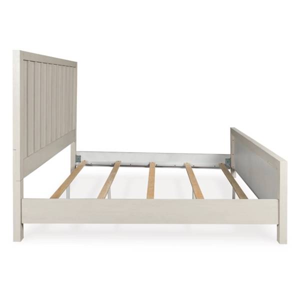 The Shaybrock King Panel Bed beautifully blends the charm of modern farmhouse design with a sense of relaxed elegance. Its antiqued white finish, paired with barn sash styling, adds a touch of rustic warmth to any bedroom, creating a serene, inviting atmosphere. This bed is the perfect centerpiece for a space that evokes a sense of comfort and nostalgia, offering an escape to a dreamy, timeless haven.