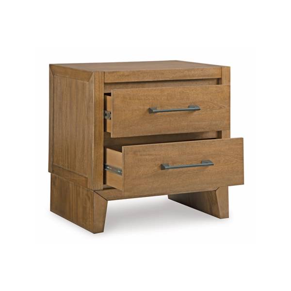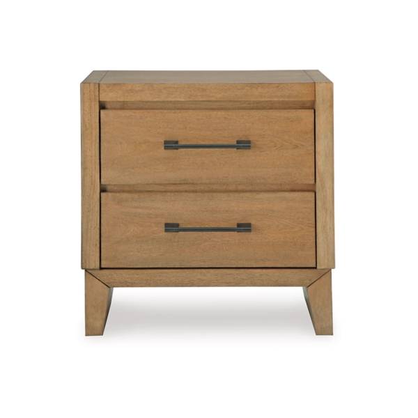 The Sherbana Two Drawer Night Stand combines elegance and durability, offering a sleek modern design with ample storage. Its sturdy build ensures longevity, while the spacious drawers provide practical organization. A perfect blend of style and functionality for any bedroom.