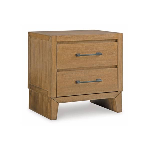 Embrace the beauty of minimalistic elegance with the Sherbana Two Drawer Night Stand, available exclusively at Teletime. Designed for those who appreciate clean lines and understated sophistication, this nightstand seamlessly blends contemporary style with a relaxed, natural aesthetic. The soft, light wood-tone finish exudes warmth, making it a versatile addition to both modern and casual-chic interiors. Crafted with hardwood solids, mango wood veneer, and a durable MDF substrate, it showcases quality craftsmanship built to last.