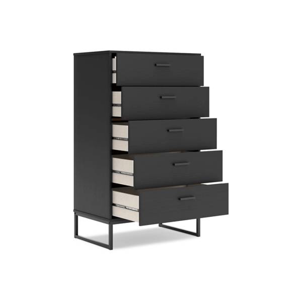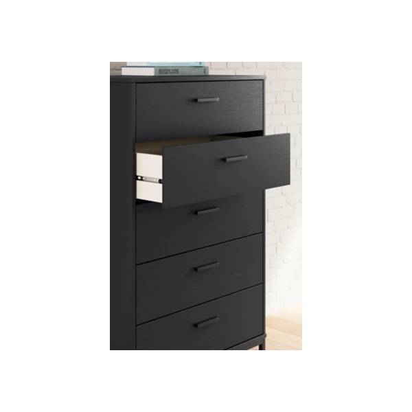 The Socalle Five Drawer Chest combines ample storage space with a durable design, making it a practical addition to any bedroom. Its thoughtful organization and modern style ensure both convenience and aesthetic appeal. Experience enhanced functionality for a clutter-free living space.