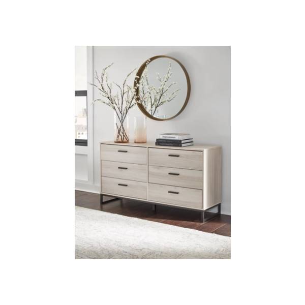 Brighten your bedroom with the contemporary elegance of the Socalle Six Drawer Dresser, available exclusively at Teletime. Inspired by modern design with a hint of natural charm, this dresser features a light natural finish that beautifully replicates the texture of authentic oak grain. Its fresh, airy appearance seamlessly blends the warmth of organic elements with the sleekness of contemporary living, making it a perfect addition to any modern or transitional space.