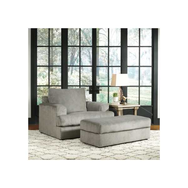 The Soletren Chair and Ottoman set brings a contemporary touch to any modern home with its trendsetting silhouette and oversized design. Designed for deep relaxation, this set offers an ample seating space, allowing you to sink into its plush comfort. The soft microfiber fabric not only enhances the luxurious feel but also adds a sophisticated look that effortlessly blends with various décor styles.